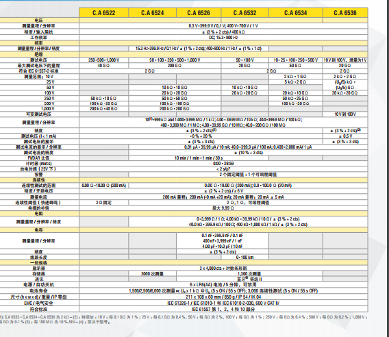 法国CA 6522绝缘电阻测试仪技术参数: