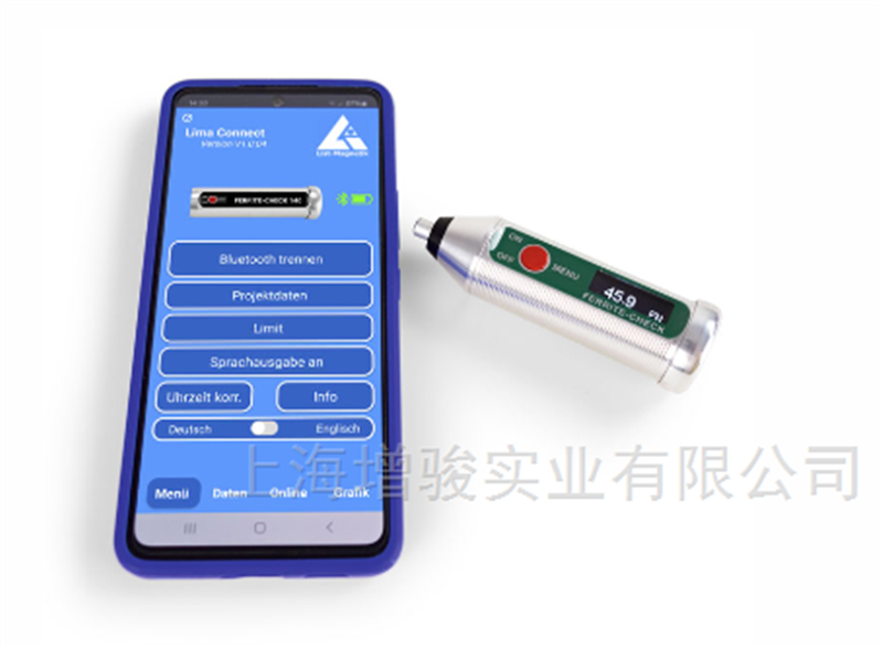 为了进一步处理测量数据,您可以将FERRITE-CHECK 140铁素体含量检测仪与移动Android和iOS设备配对。或者与一台Windows电脑通信。这是由低功耗蓝牙技术(BLE)实现的。使用Lima Connect应用程序,您可以管理项目并在照片上分配测量点。测量结果可以统计评估和图形显示。这款应用适用于安卓、iOS和Windows系统,软件免费的。
