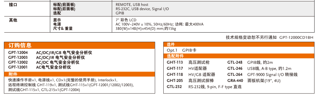 GPT-12001(仅提供交流耐压测试)、