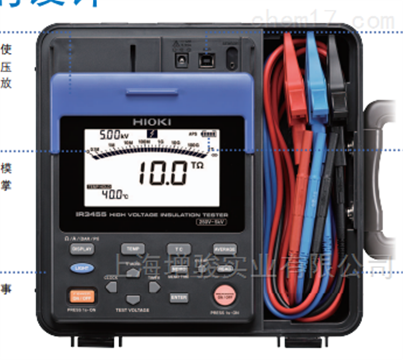 日本日置IR3455-30数字兆欧表是为了迎合对绝缘阻抗要求日益提高的市场而开发的产品,能够测量高达10 TΩ,是旧机型3455-20的2倍。此外,使用温度范围进一步扩大,而且安装了提高可视度的白色背光灯。