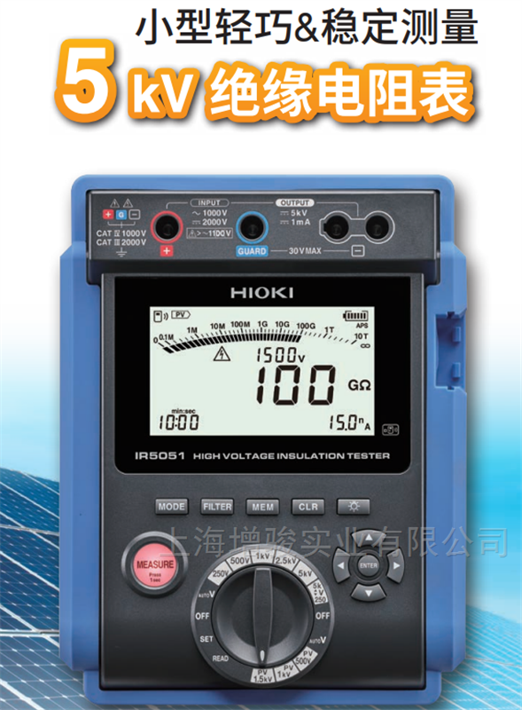测量范围广,最大10 TΩ。用于测量高压设备(变压器、线缆、马达等)的绝缘电阻。