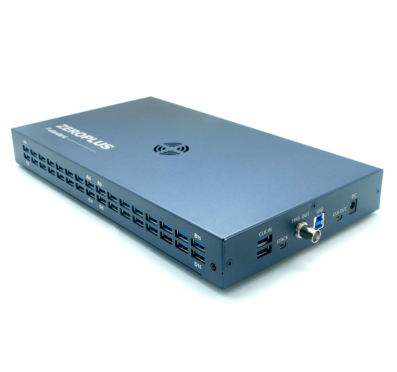 探棒传输线与主机连接port为USB3.0接口;8 port为一组触发电压、分为4组(A0-A7,B0-B7,C0-C7,D0-D7)、共计有32 port。每一条探棒传输线各自连接一组前端主动探棒,可依原厂出货配件的颜色区分使用。